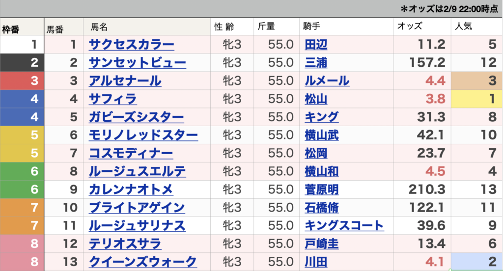 ▲サフィラ 安定して良い成績、タイムで馬券に絡む実力は十分。